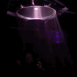 The current prototype is composed of a 600mm static concave mirror that emits RGB light from a 4.5° light aperture in the centre towards a 300mm tilting convex mirror which is positioned underneath. The convex mirror is tied with metallic ropes in strategic points around the circumference to avoid instability. The motion of the convex mirror is driven by servo motors that rotate from 0° to 135° to pull and push the ropes in order to modify the angle of the mirror through Arduino Uno. By modifying the angles of the tilting mirror, physics of light were applied by determining the normals and angle reflection of the light in order to draw the boundary around the user.