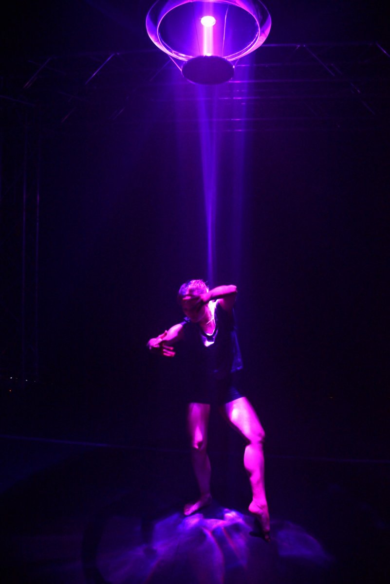The installation operates with the use of a real-time system in Unity 3D and tracks the movement of the performer by using Microsoft Kinect V2, which is a motion-sensor webcam-style system that is able to read specific parts of the body depending on the input and output criteria of the designer. In the case of Lumina, the system responds to the respective positions of the head, spine and limbs of the user within the space.