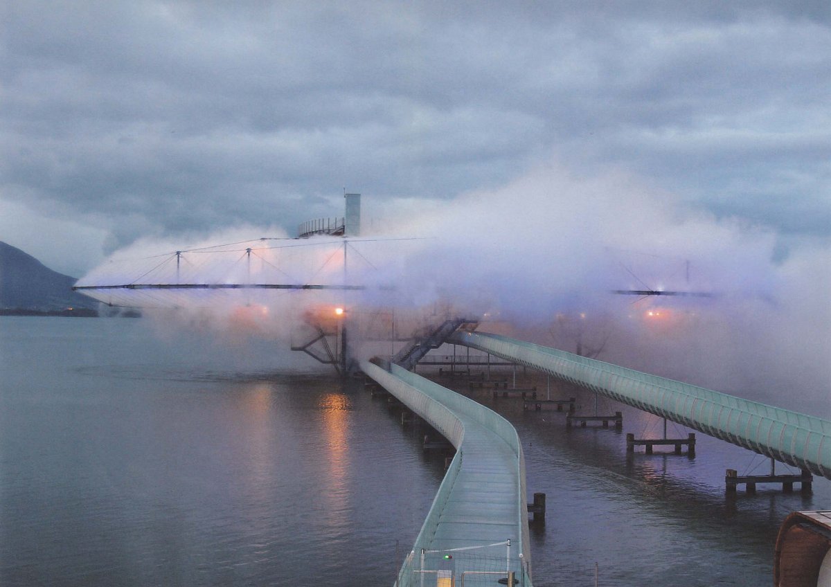 A good example of soft architecture’s connection to image is Blur building by Diller+Scofidio. They created a fog for the Swiss national expo 2002, which is produced by a smart weather system who controls how the water will by pumped, filtered and shot by special nozzles. This system reads environmental aspects like temperature and humidity, processes this data and creates a fine mist. There is also a sound installation, transmitting natural sounds. The Blur is a low resolution environment where vision is substituted only with the basics: it is a white noise nebula, where Diller+Scofidio tried to dematerialise architecture and electronic technologies 2. In this case soft architecture can also be viewed as an effort of dematerializing space in a level where the interaction between architecture and technology is perceptible only by it’s results 3.