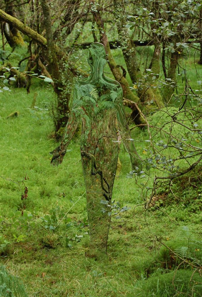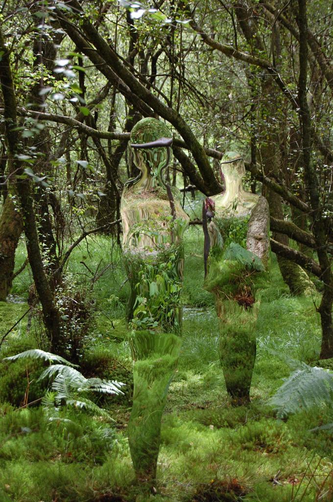 The six male and female figures represent a vestige, a faint trace of the past people and communities that once occupied and lived in this space. The figures absorb their environment, reflecting in their surface the daily changes of life in the forest. They create a visual notion of non – space. A void as if they are at one moment part of our world and then as they fade into the forest they become an intangible outline.