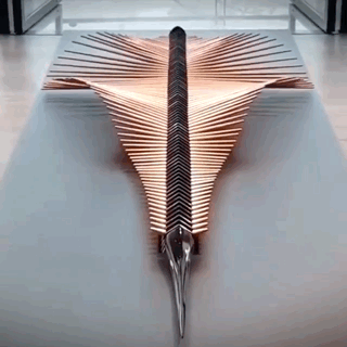 In a hyper-constructed future where untouched nature is lost, In Rhythmic Fragments aims to evoke our perception of and connection to the natural world through interaction with kinetic behaviour in future architectural spaces. As systems theory and gestalt perception thread our observation of motion hand-in-hand, concepts of uniformity and randomness, unison and separation shape our own rhythmic movement from individuals to individuals as part of a broader social group. Interaction with In Rhythmic Fragments primes this awareness of our movement through synchrony and asynchrony in its kinetic flows.