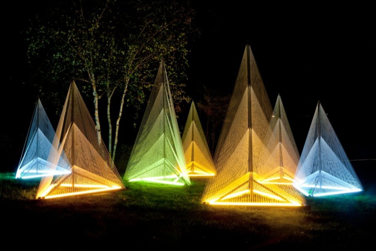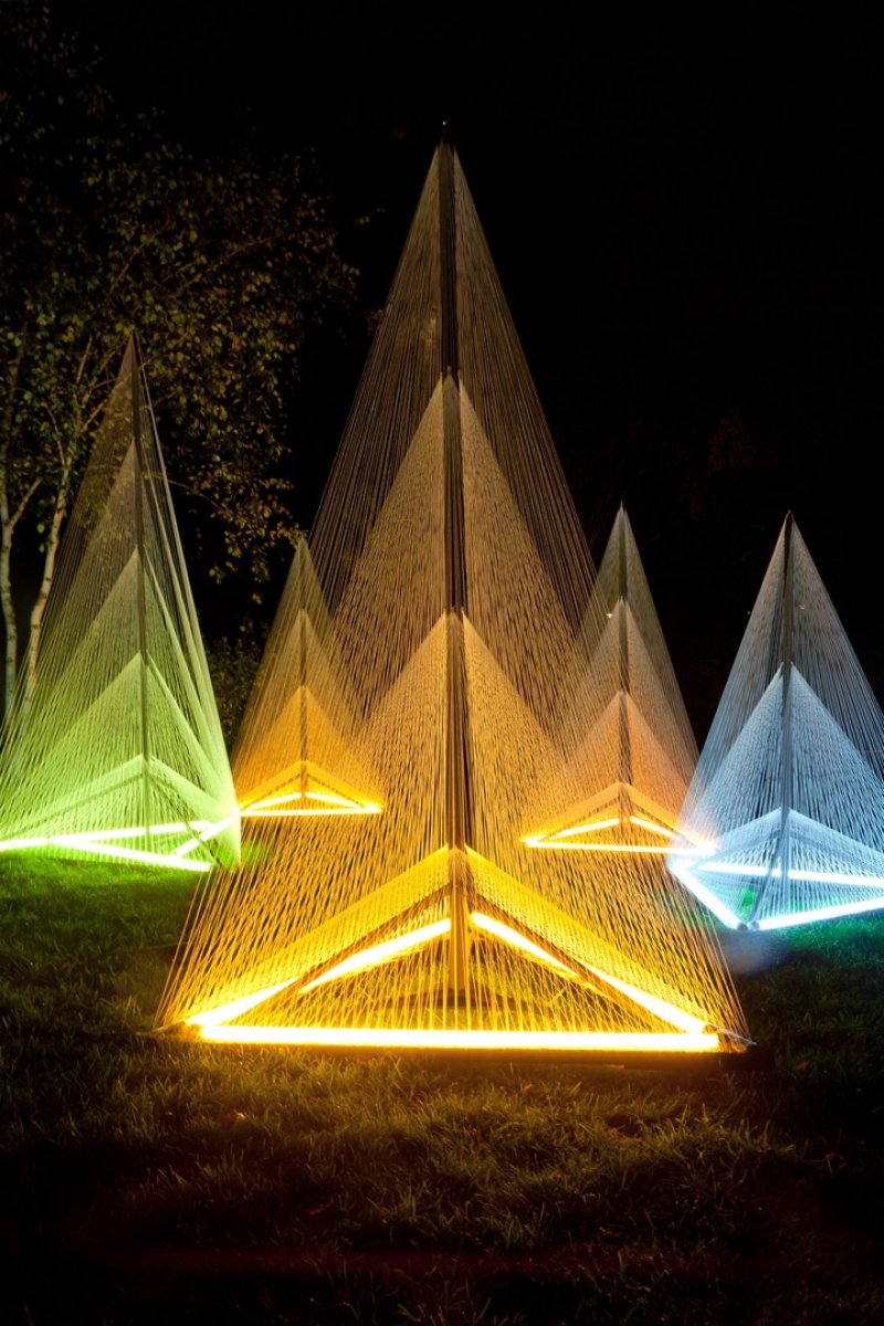 Sébastien Preschoux realized a project called ‘Nuit Blanche’ in Paris, France. During ‘Nuit Blanche’ Paris turns into one big art festival. Museums, private and public art galleries, and other cultural institutions open their doors, while the city itself turnes into one giant art gallery. Preschoux installed this fascinating work in the heart of a garden in the 13th district of Paris. The installation consists of seven wooden structures. They are up to three meters high and made of thread and light. The idea was to create peaks of colored mist growing out of the ground so that spectators could roam around them.