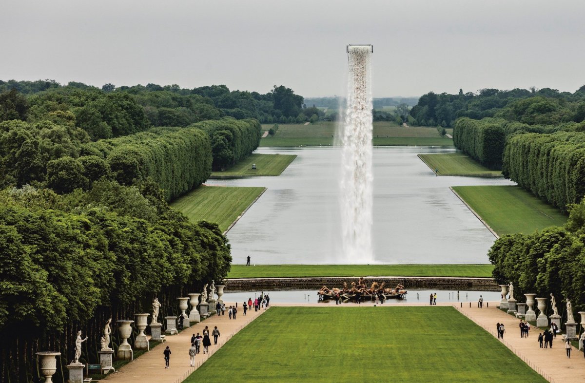The installation is partly influenced by 15th-16th century French monarch Louis XIV's landscape architect André Le Notre, who had planned an ambitious water feature for the garden that was never realised.