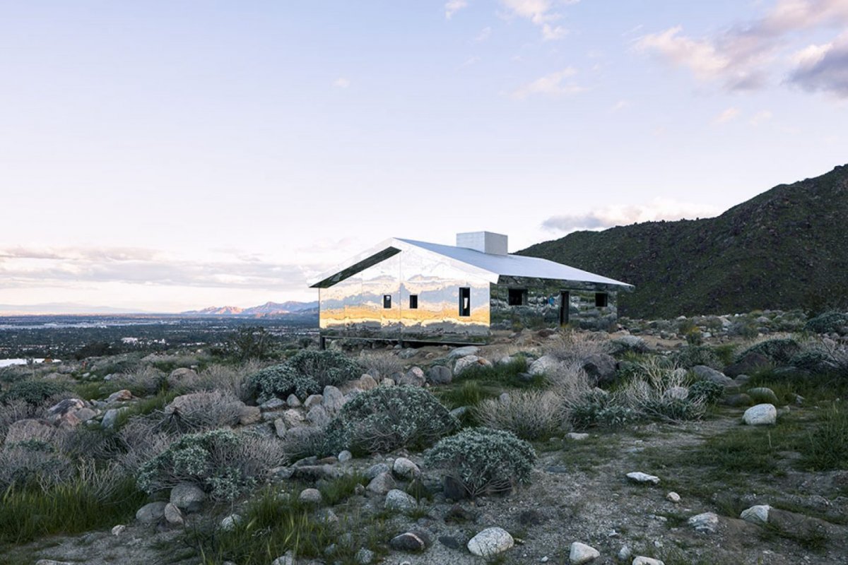 Located in the juncture where the San Jacinto mountains open into the Coachella valley in California, artist Doug Aitken has realized a typical california ranch style house completely clad in reflective mirrored surfaces.